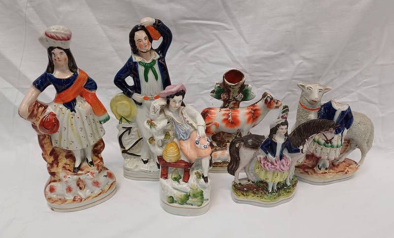 Selection of 19th century porcelain including 2 cherub figures, pair of staffordshire standing encrusted dogs,...