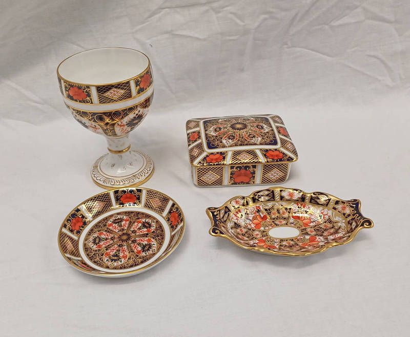 Royal crown derby lidded box, circular dish, goblet & oval dish - box 11cm wide