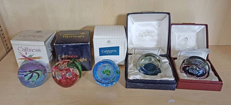 5 various caithness glass paperweights - most boxed
