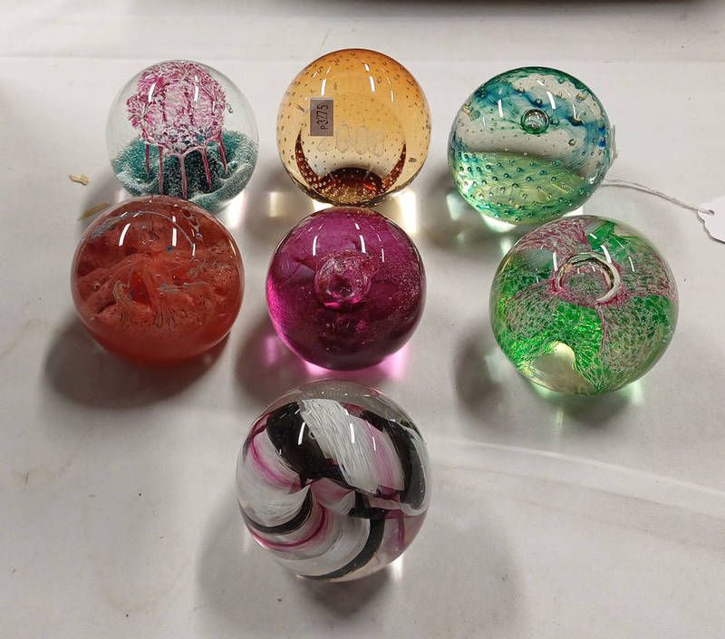 7 various caithness glass paperweights