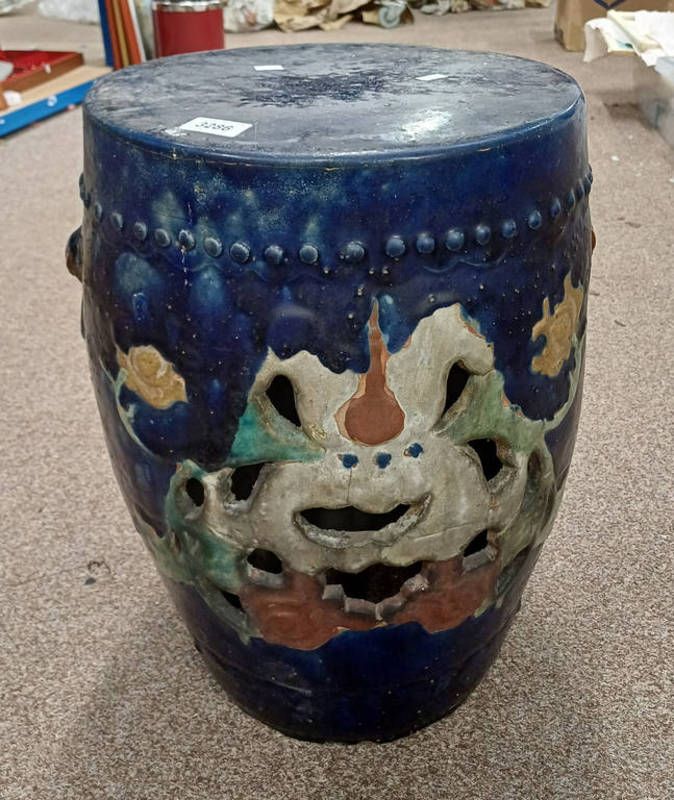 Oriental blue cylinder barrel garden seat - 48 cm tall