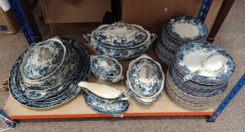 Selection of chatsworth porcelain dinnerware with floral and gilt decoration over one shelf