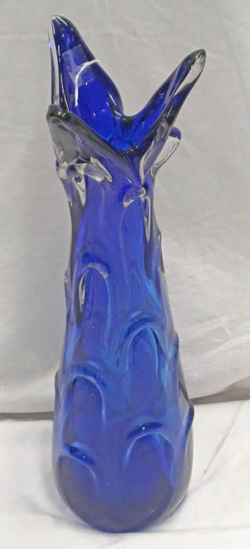 19th century gilt decorated green glass tapering vase and gilt decorated blue & clear glass...
