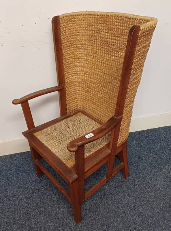 Oak framed orkney chair with rush back & seat - 105 cm tall