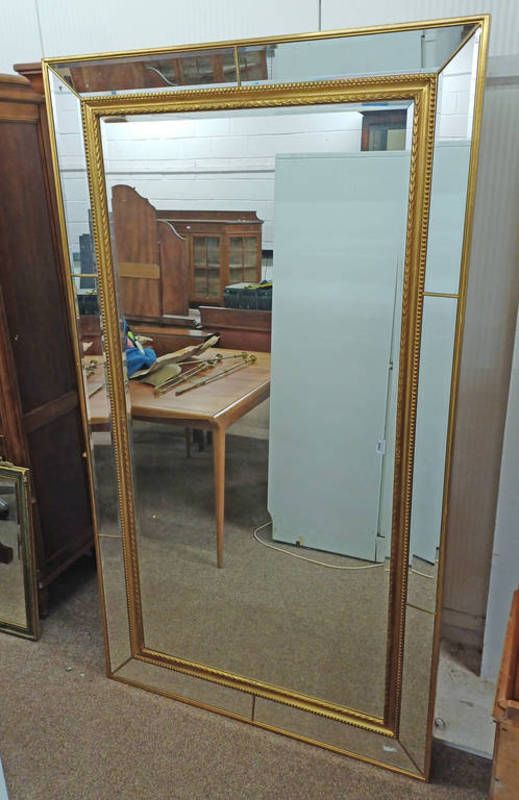 Large bevelled glass & gilt framed rectangular over mantle mirror with bevelled edge - glass : 168 cm x 83 cm
