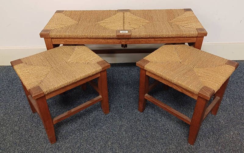 2 early 20th century oak rectangular tables with tapestry inset tops & flip top oak...