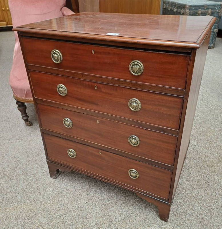 Late 19th century mahogany chest of 4 long graduated drawers on bracket supports - 76 cm tall x 66 cm wide