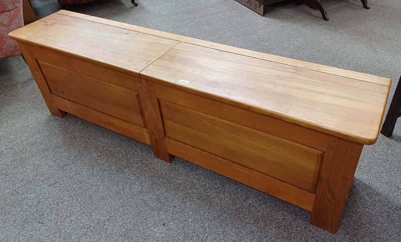 Hardwood storage chest with 2 hinged lids - 53 cm tall x 172 cm long