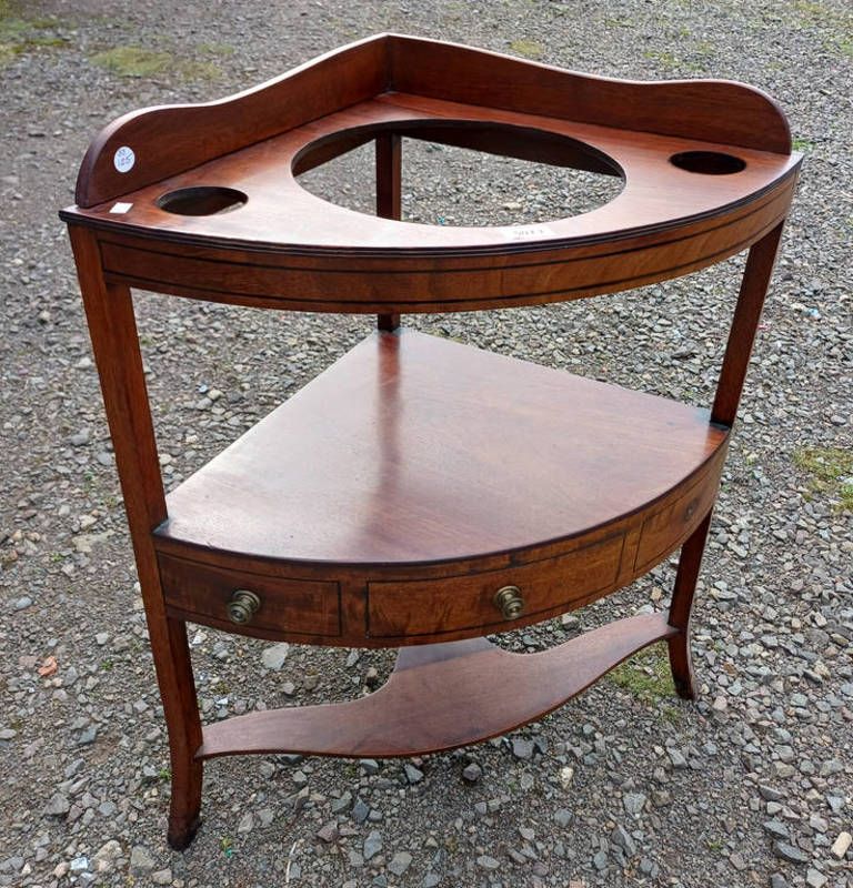 19th century mahogany corner washstand with ebony line inlay on splayed supports