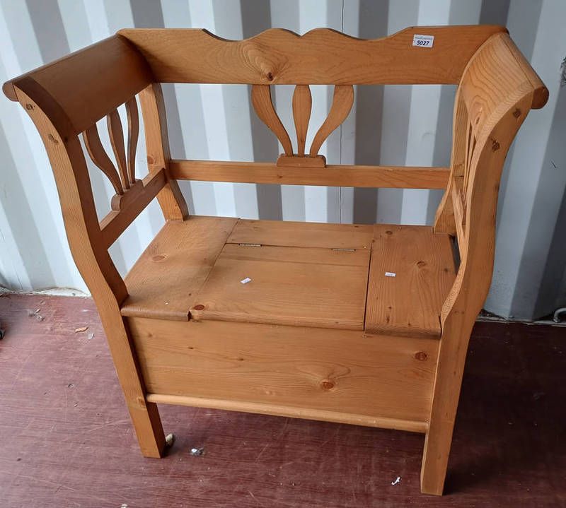 Pine bench with lift-lid seat, 90cm tall x 81cm wide