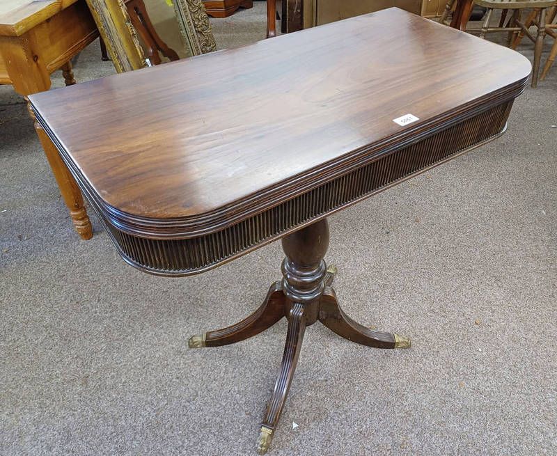 Regency style turnover tea table on centre pedestal with 4 spreading supports terminating at paw feet - 80 cm tall x 85 cm wide