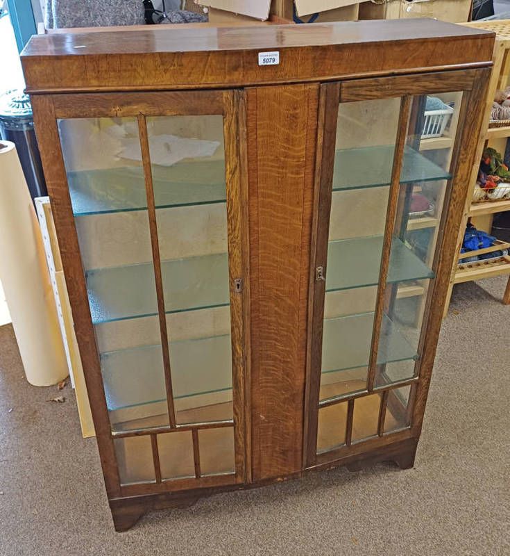 20th century oak display cabinet with 2 glazed panel doors - 125 cm tall x 92 cm wide