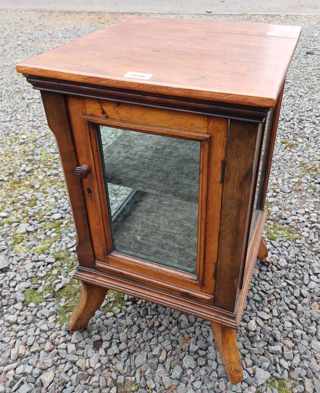 Late 19th or early 20th century display cabinet with glazed panel door on splayed supports
