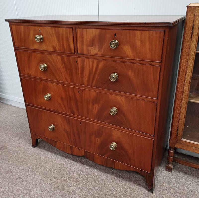 19th century mahogany bow front chest of 2 short over 2 long drawers on splayed...