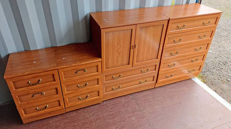 Modern bedroom suite - wardrobe, 5 drawer chest & pair of bedside chests