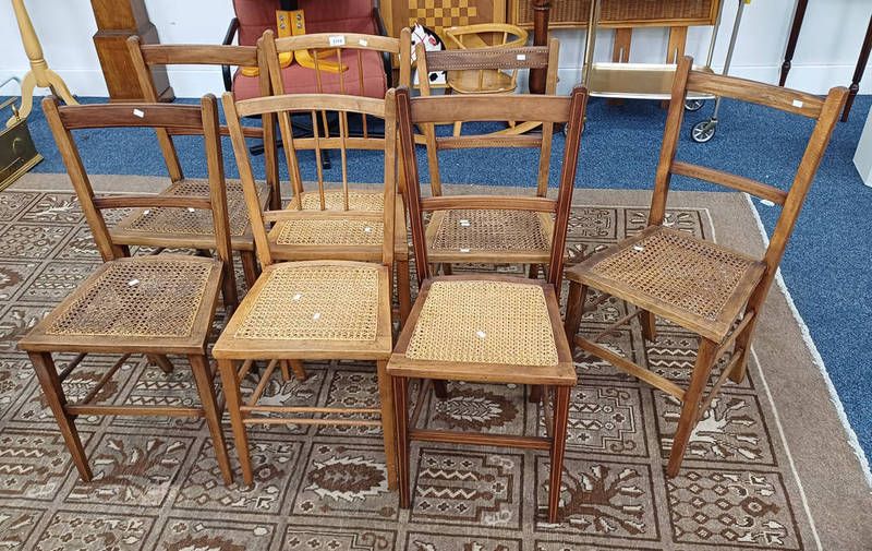 7 inlaid hand chairs with bergere seats & square tapered supports