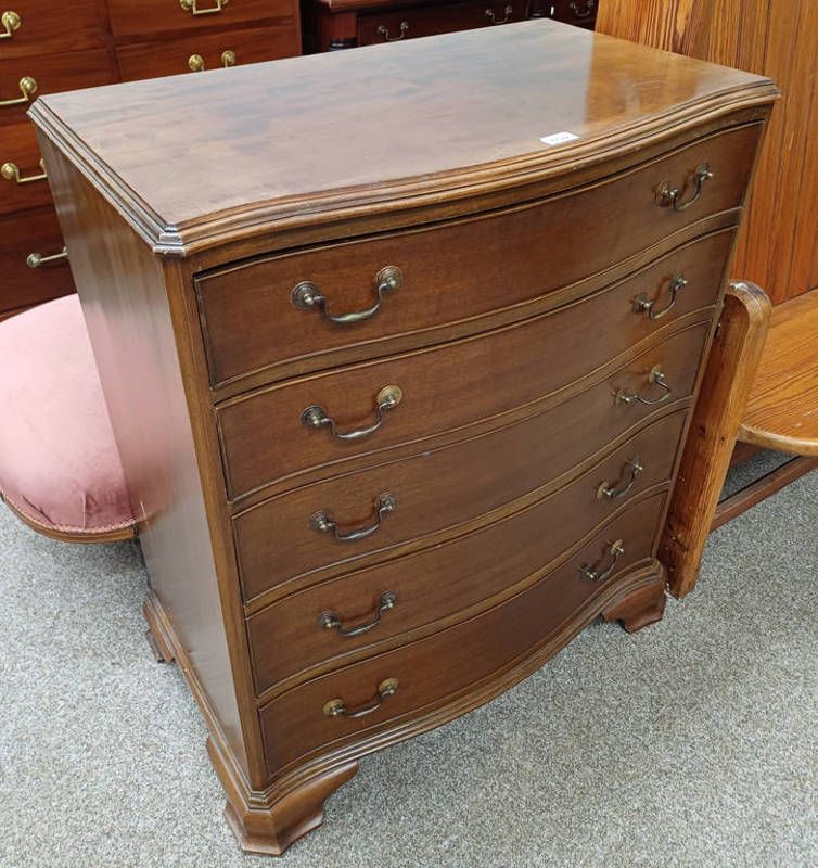 20th century mahogany chest of 5 drawers with serpentine front on bracket supports - 97 cm tall x 81 cm wide