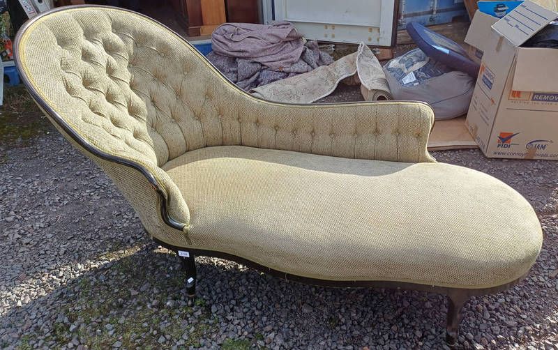 Late 19th or early 20th century inlaid mahogany chaise longue with fret work decoration
