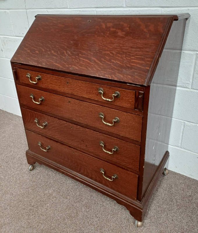 Late 19th century oak bureau with fall front over 4 long graduated drawers - 110 cm tall x 96 cm wide