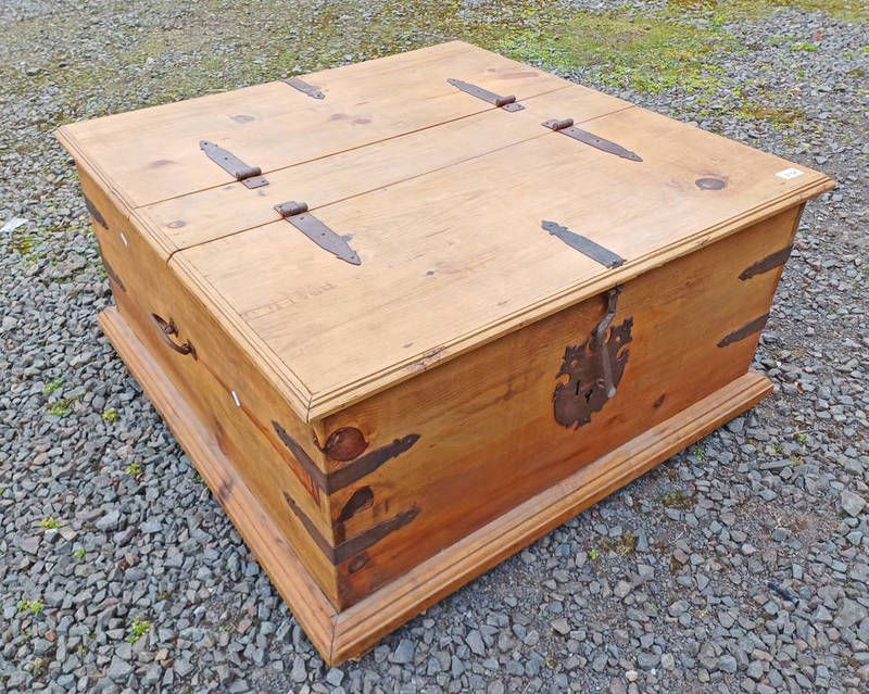 Pine box with 2 hinged lids & metal fittings