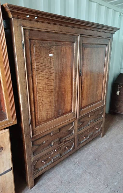 18th / 19th century oak cabinet with 2 panel doors over 2 drawers with later renovations