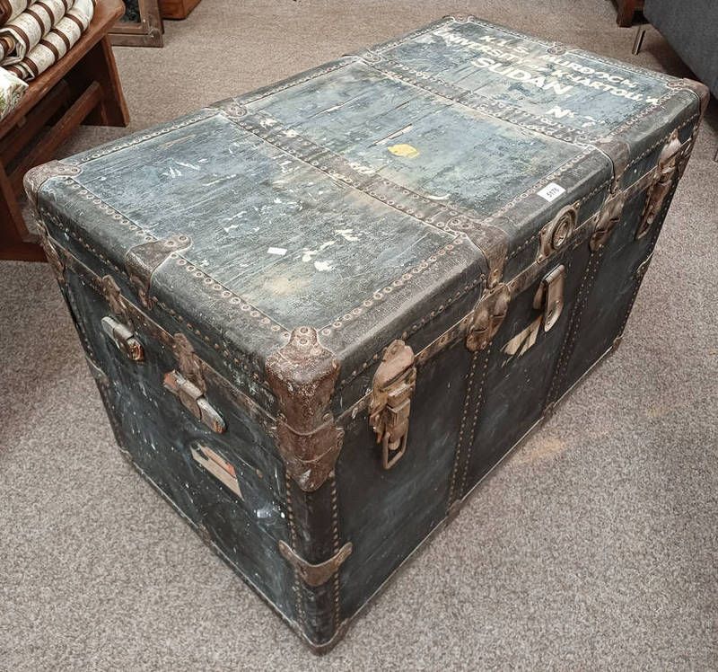 Wood bound dome top trunk with metal fittings - 62 cm tall x 92 cm...