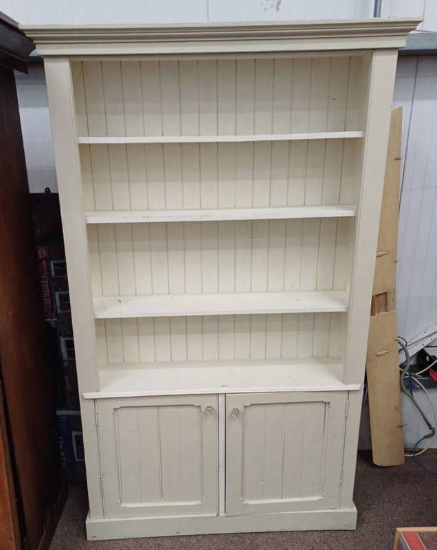 Painted open bookcase with 2 panel doors to base - 215 cm tall