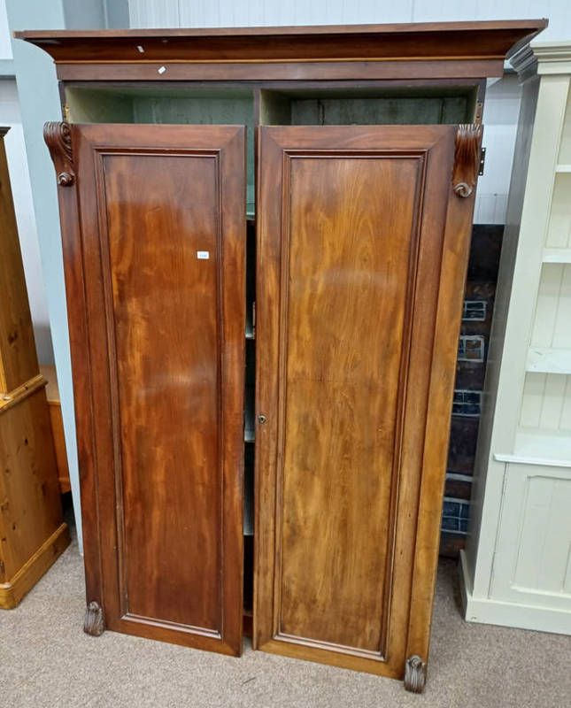 19th century mahogany 2 door wardrobe on plinth base - 216 cm tall