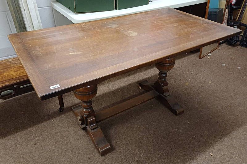 20th century oak refectory style table on twin balusters with shaped supports - 145 cm long