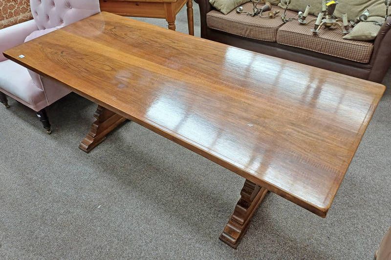 20th century spanish walnut refectory table stamped almazan & with the town's crest to supports - 200 cm long