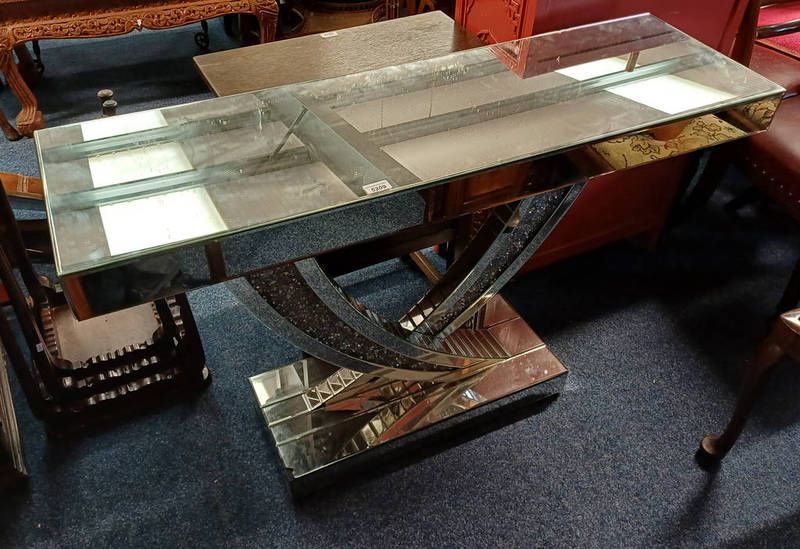 Decorative mirror panel pier table on x frame - 80 cm tall x 120 cm long