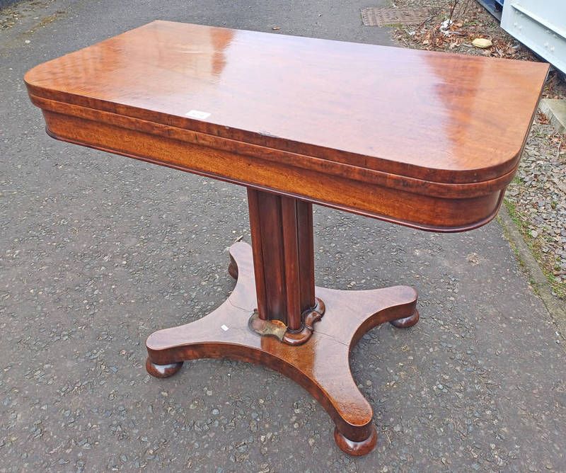 19th century mahogany turn over tea table on centre pedestal with 4 spreading supports - 94 cm wide