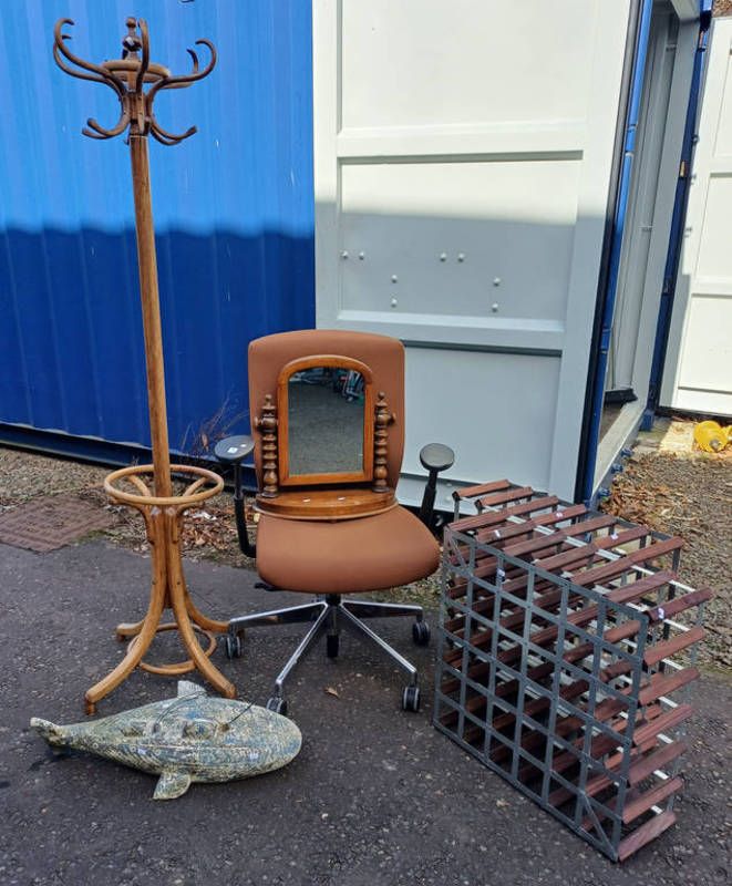 Bentwood coat stand, mahogany dressing table mirror etc.