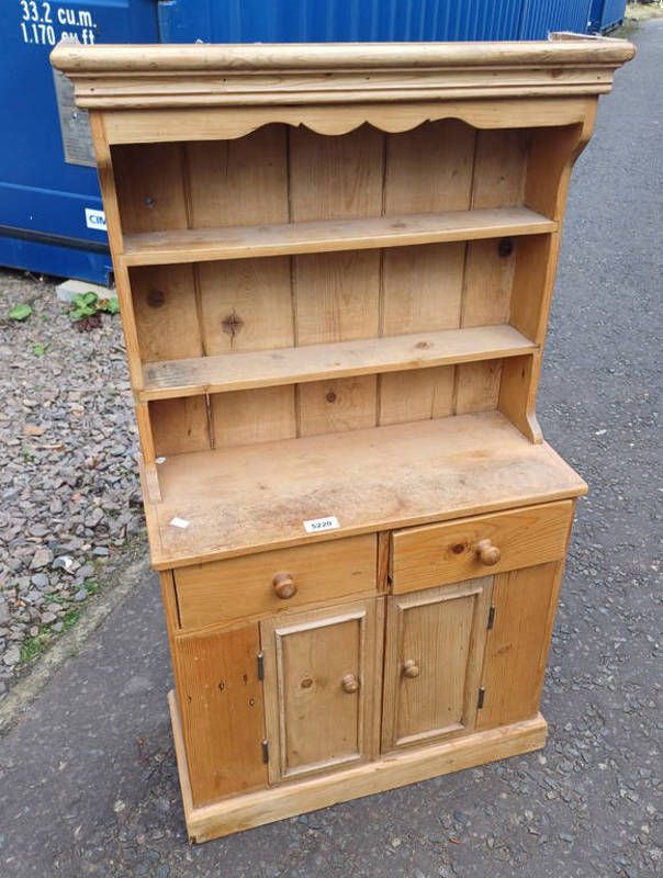 Doll's pine welsh dresser with shelf back over 2 drawers over 2 panel doors - 94 cm tall x 52 cm wide