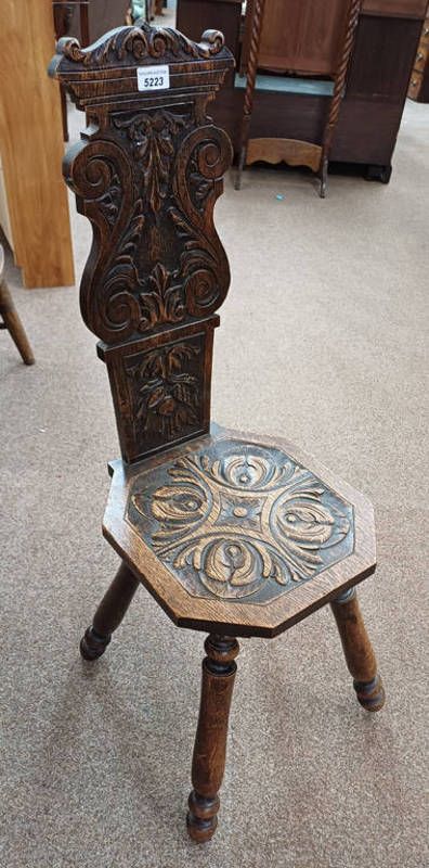 Early 20th century carved oak spinning chair in the arts & crafts style - 93 cm tall