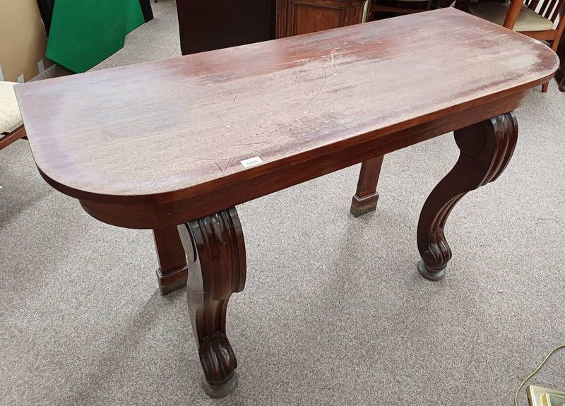 19th century mahogany side table with decorative shaped supports - 84 cm tall x 141 cm wide