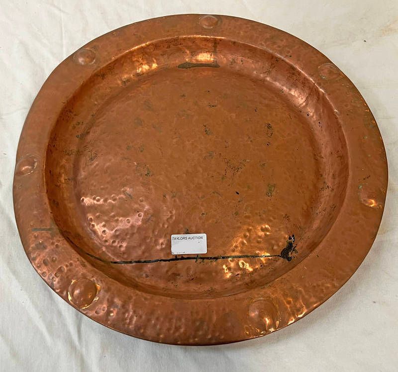 Arts & crafts circular copper charger, 42.5cm across