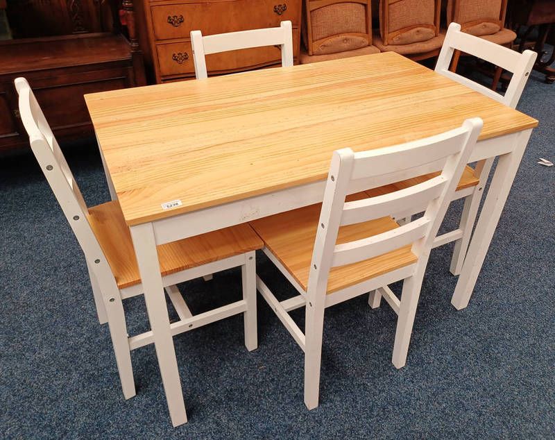 Extending kitchen table with inset top & fold-out centre leaf on centre pedestal, & set...