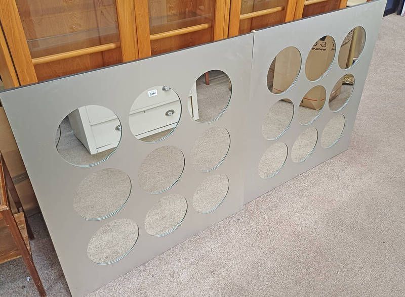 Pair of 9 circular section wall mirrors with silvered frames - 100 cm x 100 cm