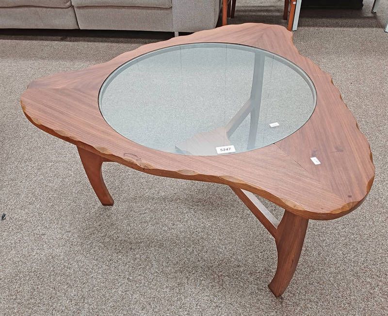 Oak coffee table with 2 drawer with carved decoration & gilded metal standard lamp on...