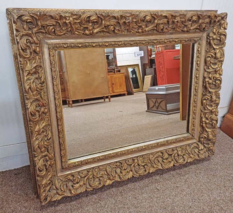 Early 20th century decorative gilt framed rectangular mirror : glass 44 cm x 61 cm