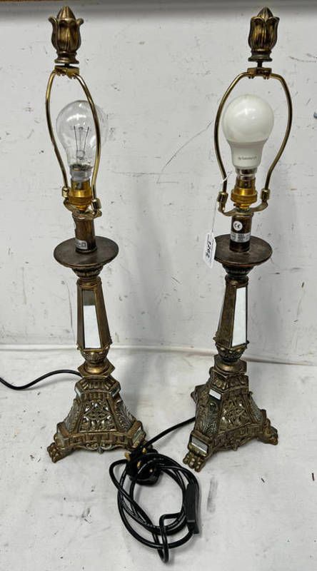Pair of table lamps with mirrored panels, 63cm tall