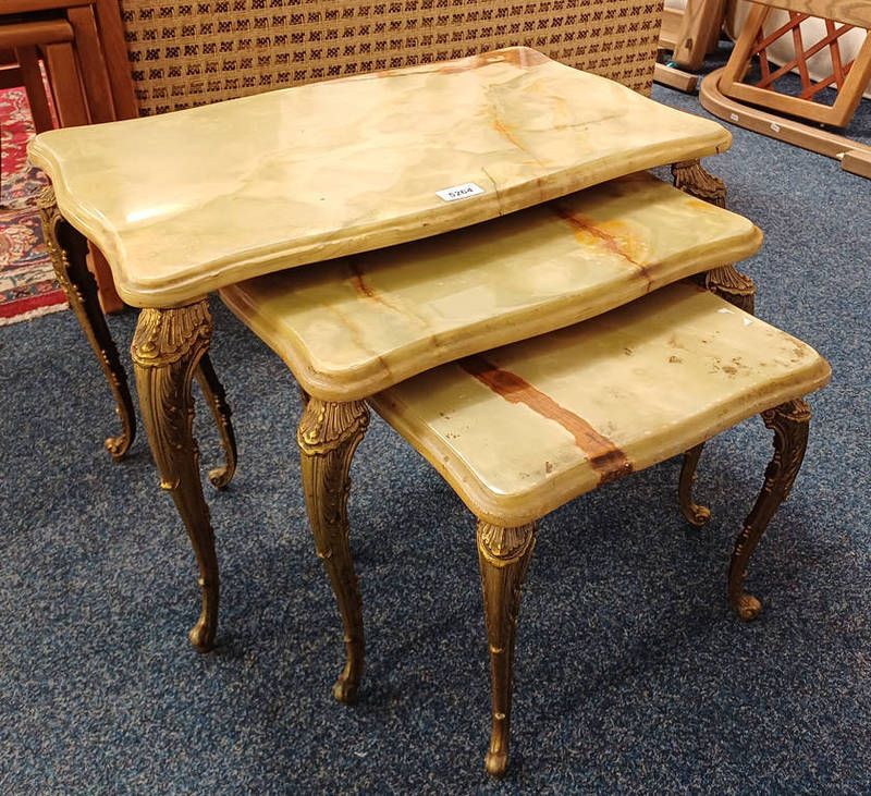 Nest of 3 hardstone topped tables on decorative gilt ormolu cabriole supports