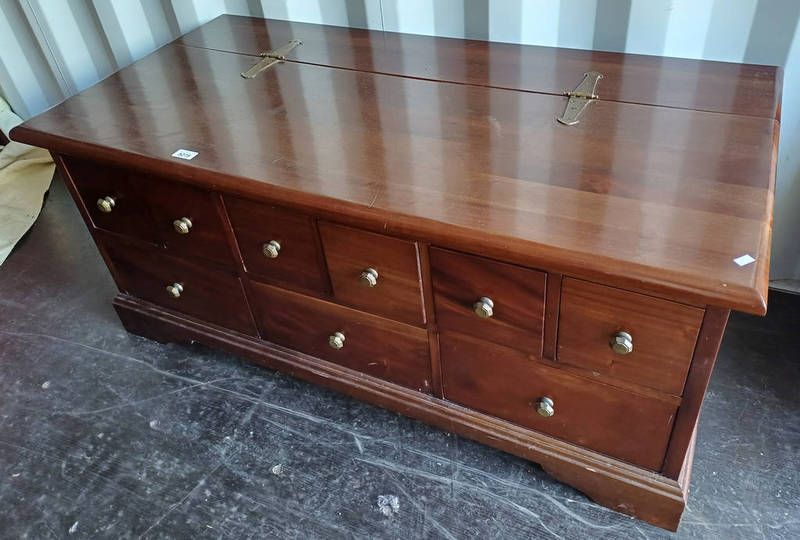 Hardwood coffer with hinged lid top & 9 drawers to front - 123 cm wide