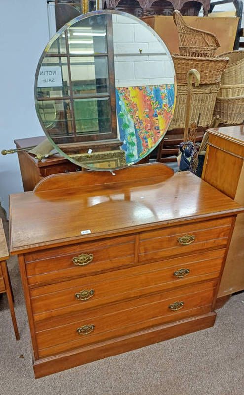 Early 20th century mahogany dressing chest with circular mirror over 2 short & 2 long drawers on plinth base - 162 cm tall x 107 cm wide
