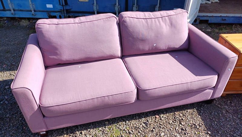 Plum fabric overstuffed settee