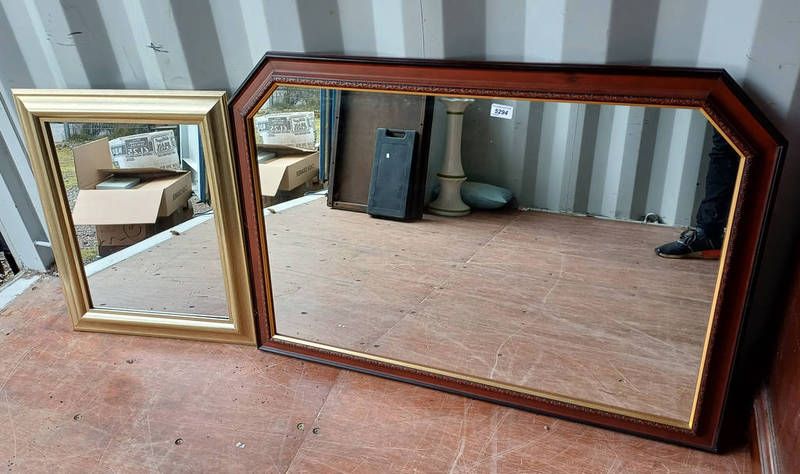 Pine overmantle mirror - glass: 59 cm x 90 cm - & one other mirror