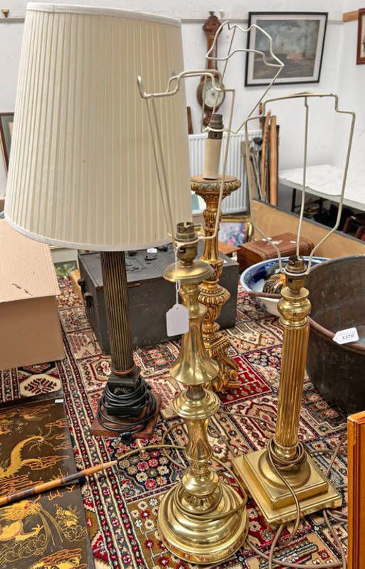 2 gilt metal table lamps, 1 with corinthian column, gilt classical style table lamp & 1 other -4-