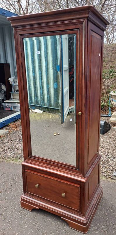 Willis & gambier hardwood cabinet, the swing mirror panel door over single drawer on bracket supports - 180 cm tall