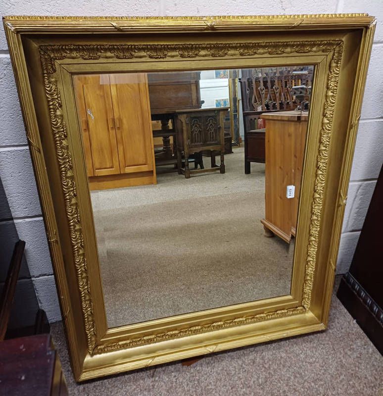 19th century decorative gilt frame with later beveled edge mirror . glass : 62 cm x 77 cm